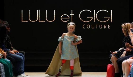 پیرس فیشن ویک ،بچی کی مصنوعی ٹانگوں کے ساتھ واک